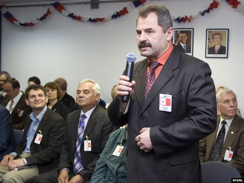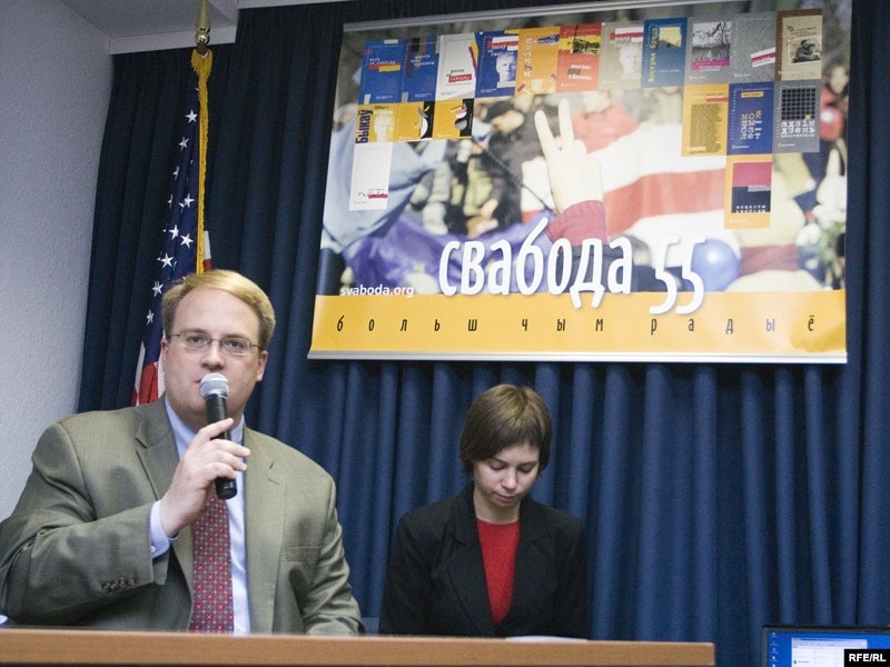 “Мы адзначаем 55-ю гадавіну Радыё Свабода. Мы толькі ладзім гэту імпрэзу, і для нас гэта вялікі гонар — прымаць прэзыдэнта Радыё Свабода спадара Гедміна і Аляксандра Лукашука, кіраўніка Беларускай службы Радыё Свабода”.